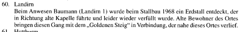 Der Erdstall Landirn ist in von Manfred Stolper in der Erdstall kurz und knapp beschrieben[1].