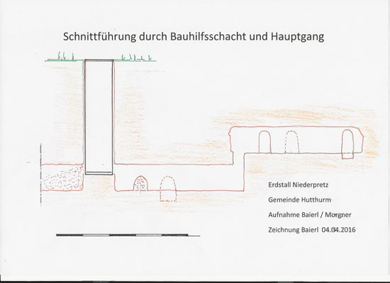 Fred Baierl , assistiert von Christina Morgner, hat in gewohnter Weise Skizzen des Erdstalls gefertigt.