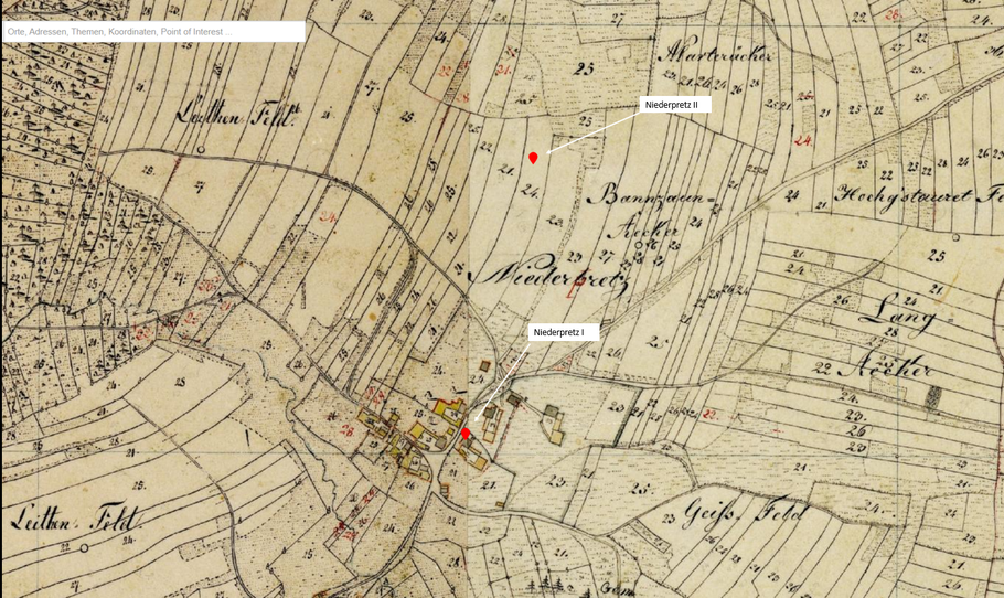 Unter „Liquidationsplan Prag“, das hat übrigens mit der Hauptstadt Prag der Tschechischen Republik nichts zu tun, steht „Niederpretz G H uGr“. Die Bezeichnung ist unter der Überschrift „8.2 Formaltypologische Einordnung von Gruppensiedlungen und Einzelhöfen des hochmittelalterlichen Siedlungsraumes“ genauer beschrieben: