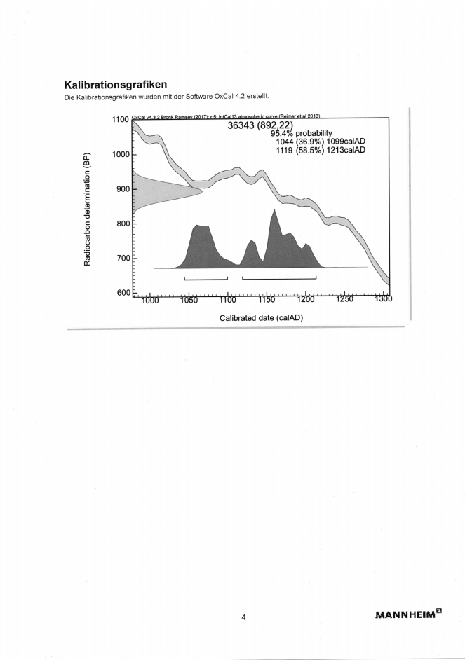 Das aus dem Erdstall entnommene Holzstück ist zu datieren auf das Hochmittelalter, zwischen 1045 AD bis 1213 AD.